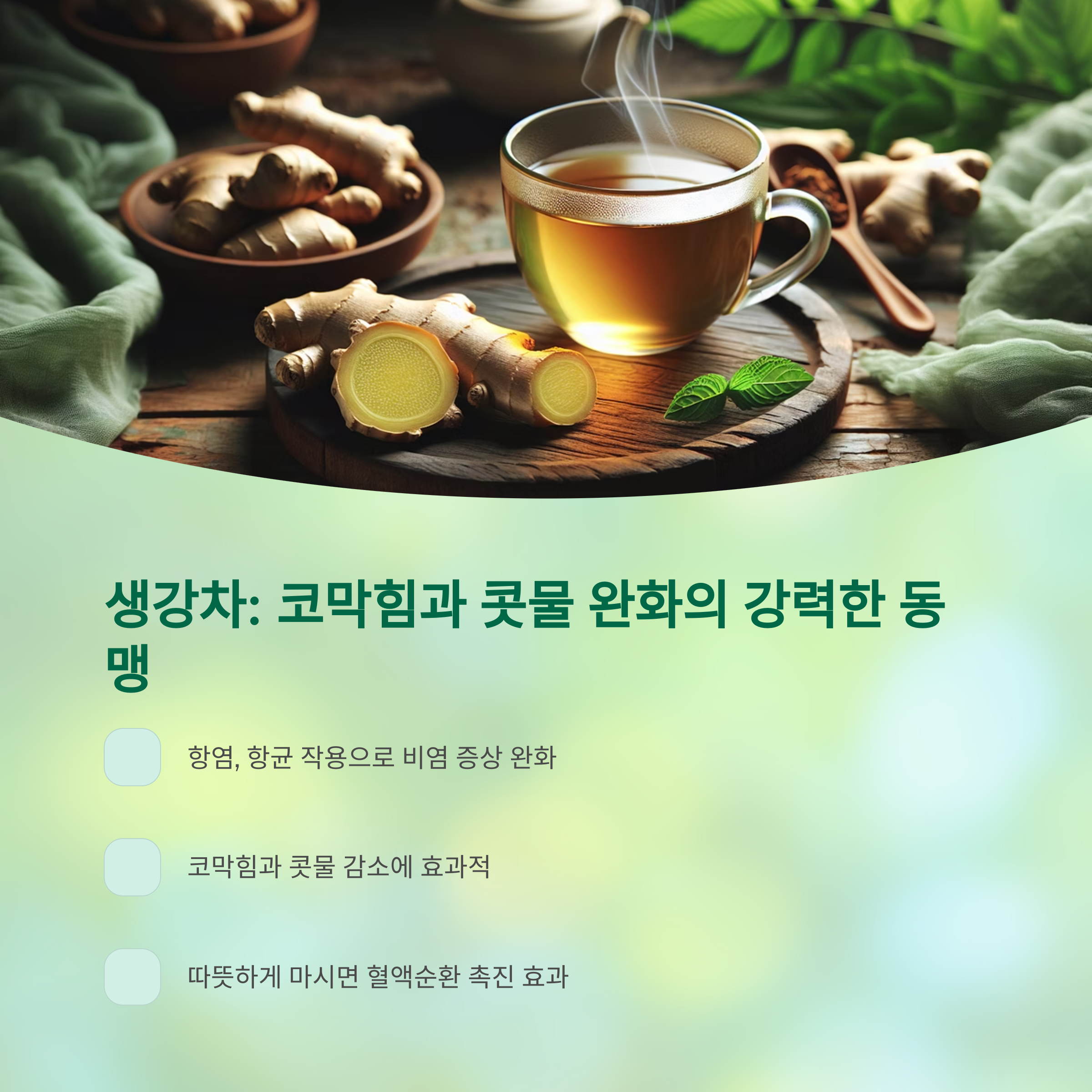 1. 생강차 – 몸을 따뜻하게 해주는 대표 비염차