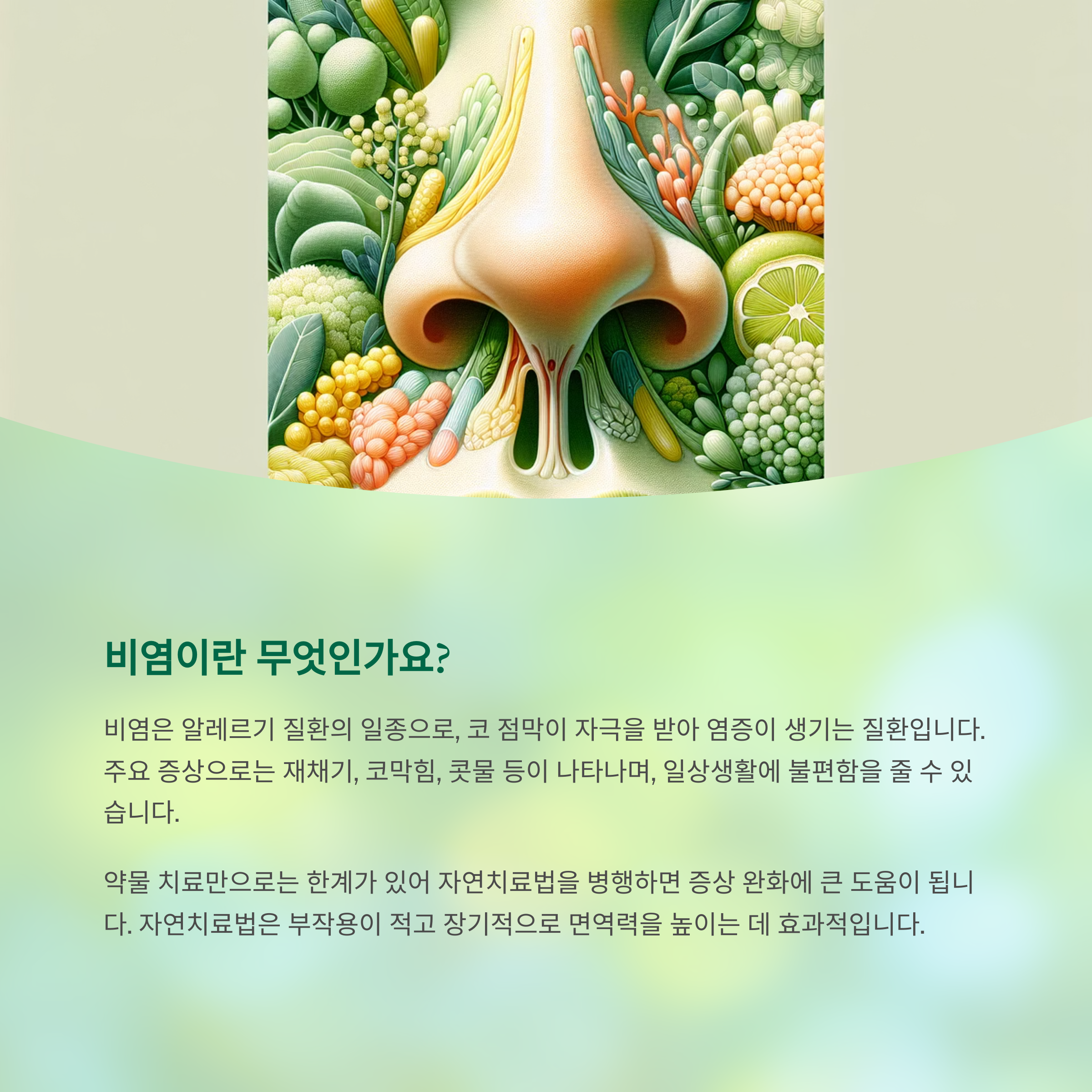 비염은 현대인에게 매우 흔한 알레르기 질환으로, 계절과 환경 변화에 따라 재채기, 코막힘, 콧물 등의 증상이 심해집니다. 약물 치료도 효과적이지만 장기 복용 시 부작용이 있을 수 있어 자연치료법을 함께 활용하는 것이 좋습니다. 이번 글에서는 약 없이도 실천 가능한 비염 자연치료법 TOP 7을 상세히 소개합니다. 생활 속에서 손쉽게 실천할 수 있는 방법들이므로, 비염으로 고생하는 분들이라면 꼭 끝까지 읽어보시기 바랍니다.