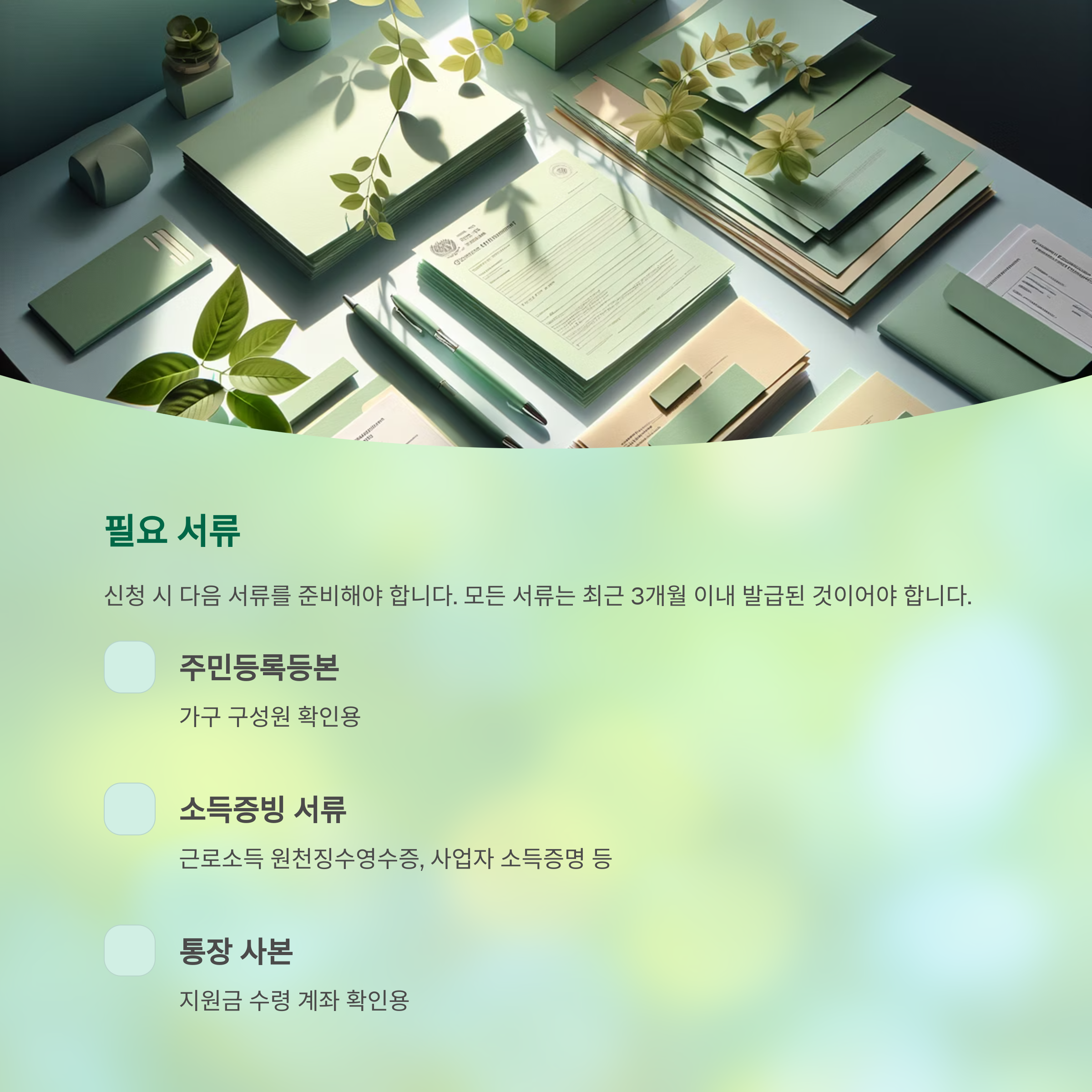 - 주민등록등본 (최근 1개월 이내 발급)